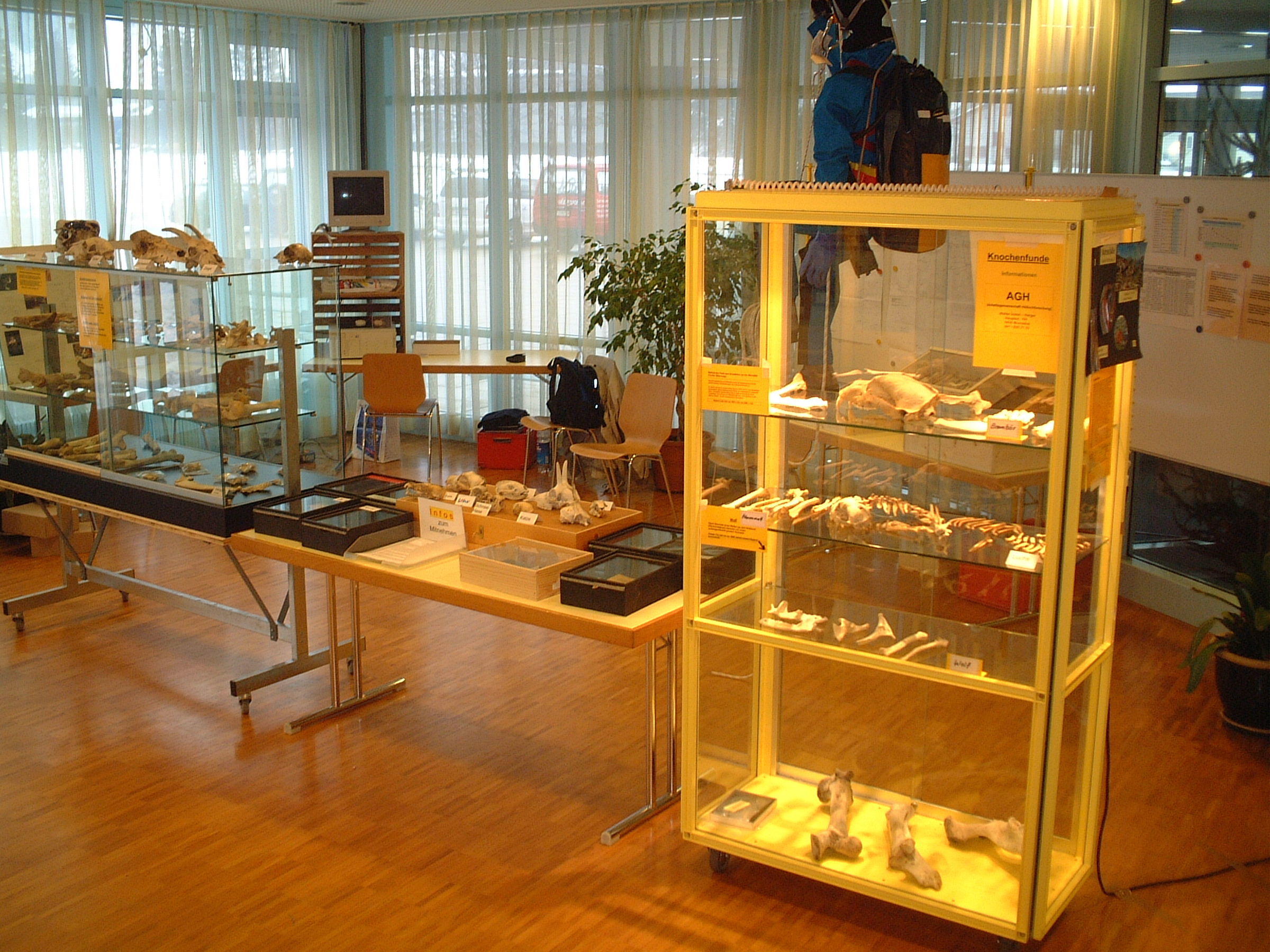 Nach dem Tod von Philipp Morel, lic. phil. nat. im Jahre 1999 übernahm Walter Imhof, Lehrer, Muotathal die Aufarbeitung, Beschriftung und Archivierung des anfallenden Knochenmaterials aus den Höhlen im Muotatal. Damit war der Grundstein gelegt für eine umfangreiche Sammlung, in welcher mittlerweile schätzungsweise 10`000 Knochen von 56 verschiedenen Tierarten aus 87 Höhlen aufbewahrt werden. Diese Sammlung (Bild 22a, Bild 22b, gilt inzwischen als höchst wertvolle und bedeutende Referenzsammlung, welche die Karstregionen des Muotatals abdeckt und schweizweit einmalig ist.